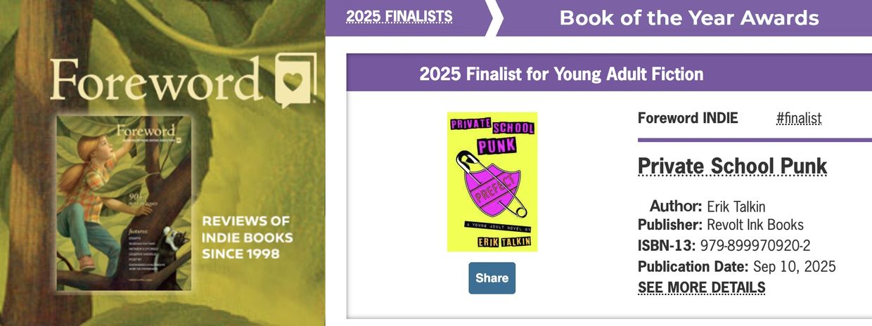PSP has just been named a finalist for the Foreward Indie Book of the Year 2025 in the Young Adult category. This is voted on by librarians and booksellers, and winners are announced in June.